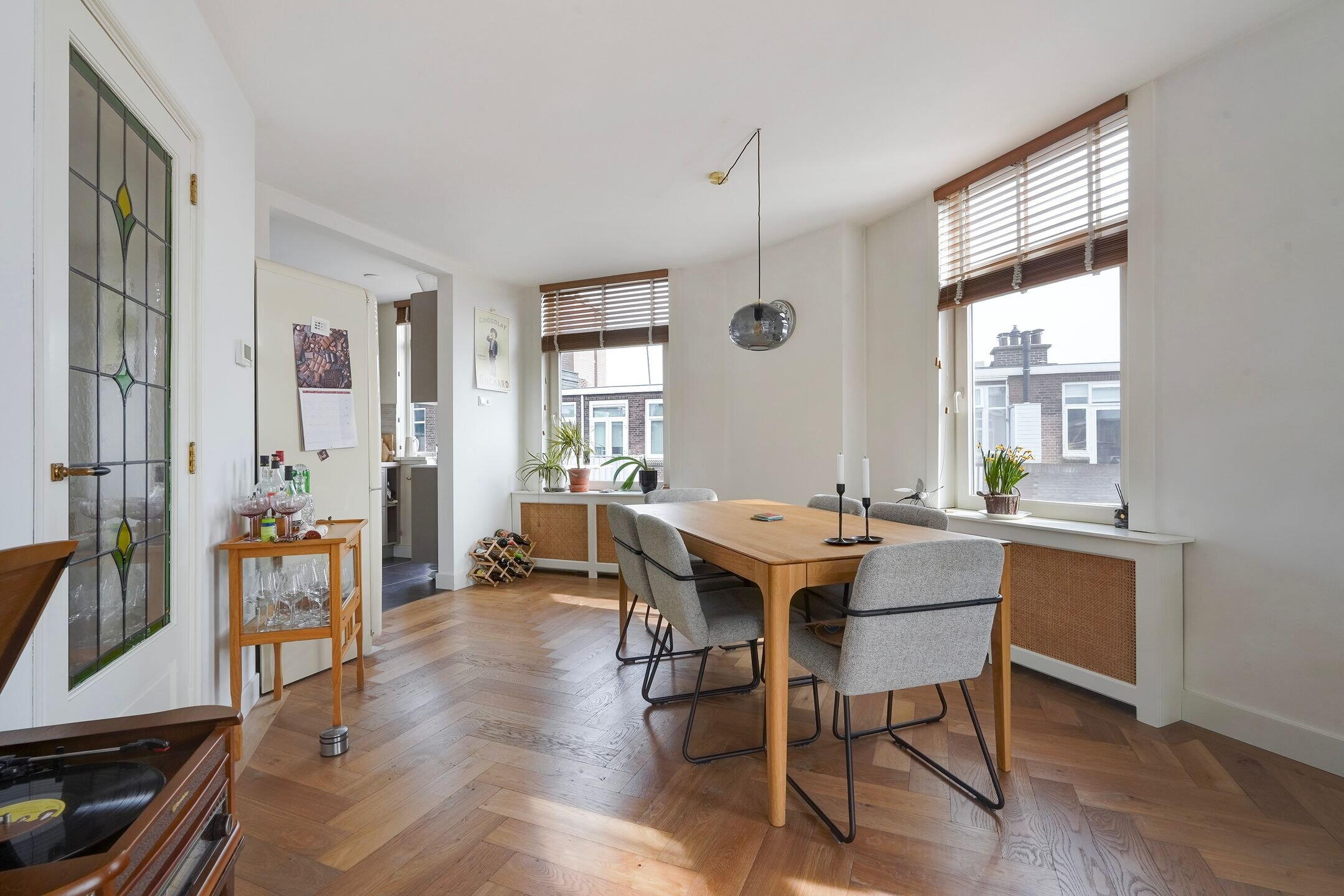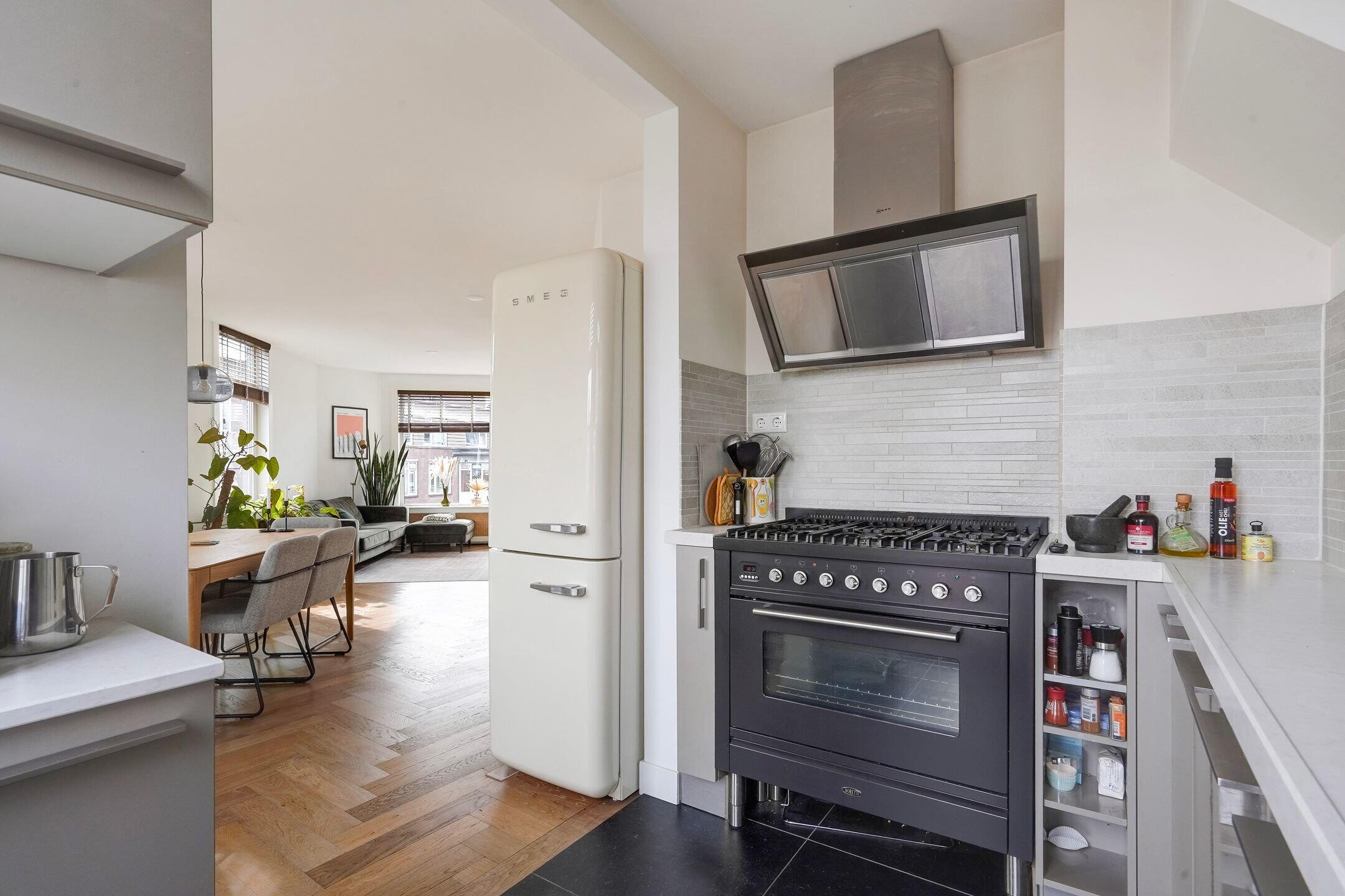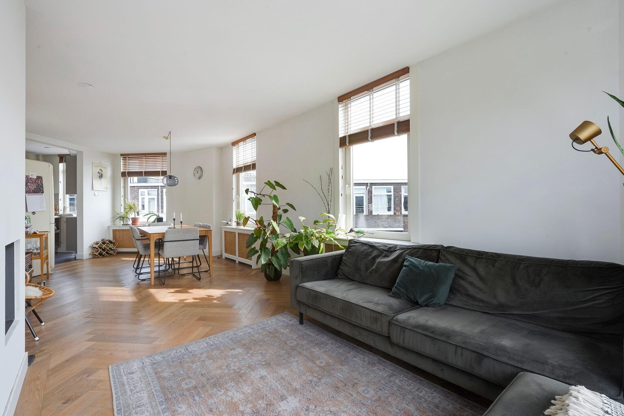 Open Haags portiek, entree op eerste etage, hal met meterkast, trap naar tweede verdieping, ruime lichte overloop, royale woon- eetkamer met een nieuwe hard houten eiken vloer, over de gehele lengte van de woning met een gezellige gesloten houtkachel, door de vele ramen komt er veel licht het appartement binnen en je kijk uit over het pleintje. Aangrenzende moderne open keuken met ingebouwde vaatwasser, een Smeg koel-vriescombinatie en een Boretti gasfornuis (inclusief spit functie) met design afzuigkap en toegang naar het balkon aan de achterzijde. Aan de voorzijde gelegen twee ruime slaapkamers. Compleet gerenoveerde badkamer voorzien van regendouche, wastafelmeubel en aansluiting voor de wasmachine en droger. Separaat toilet met fonteintje.