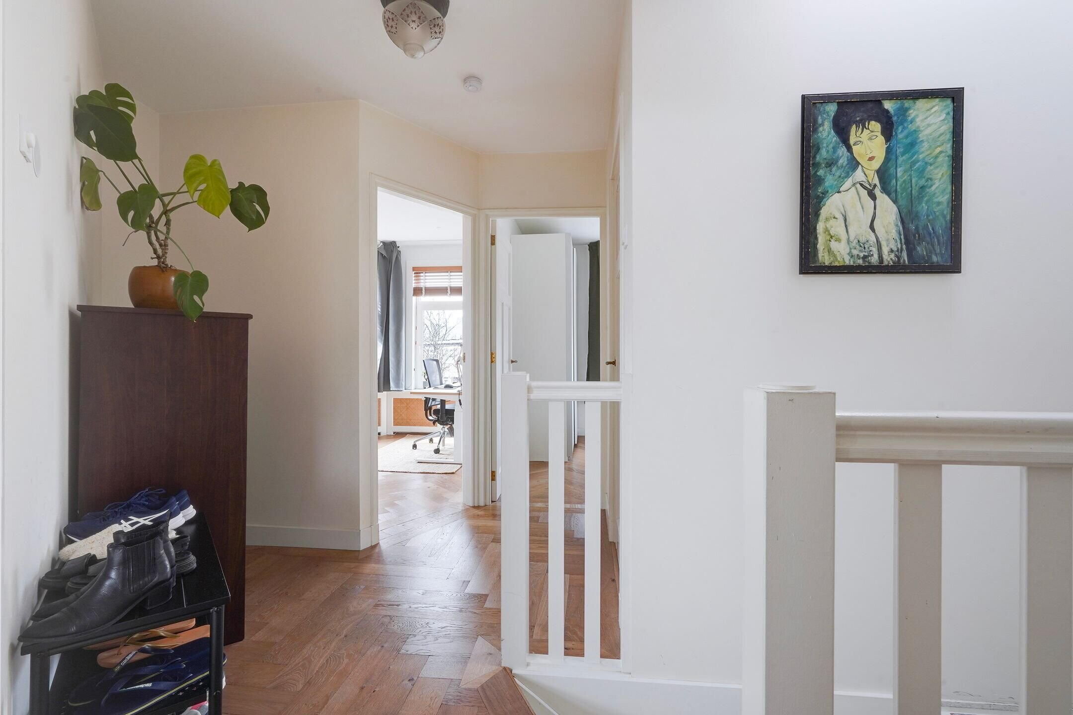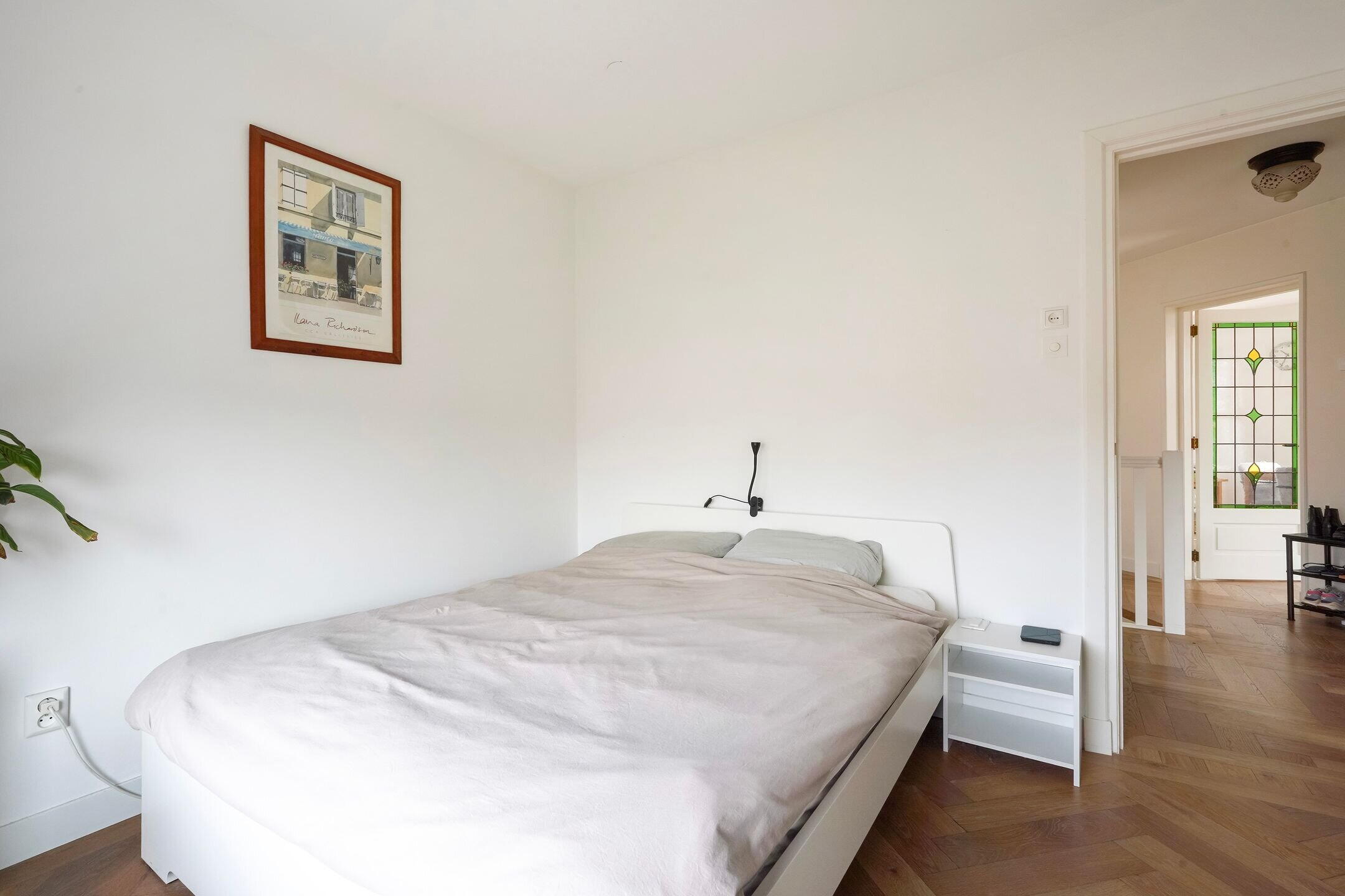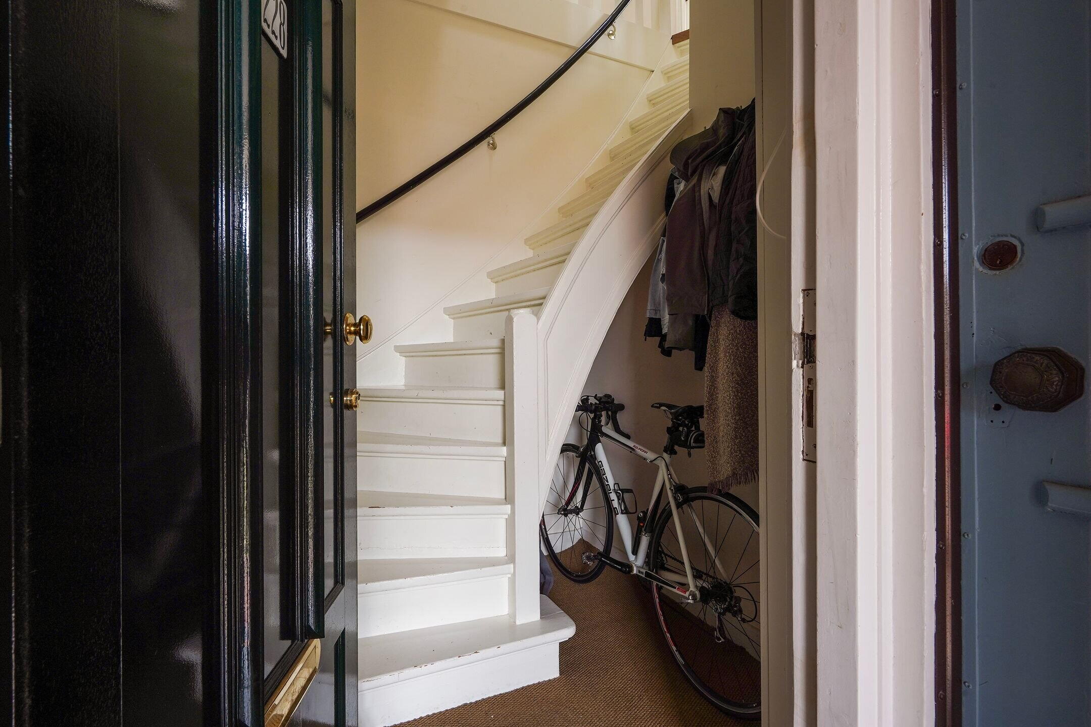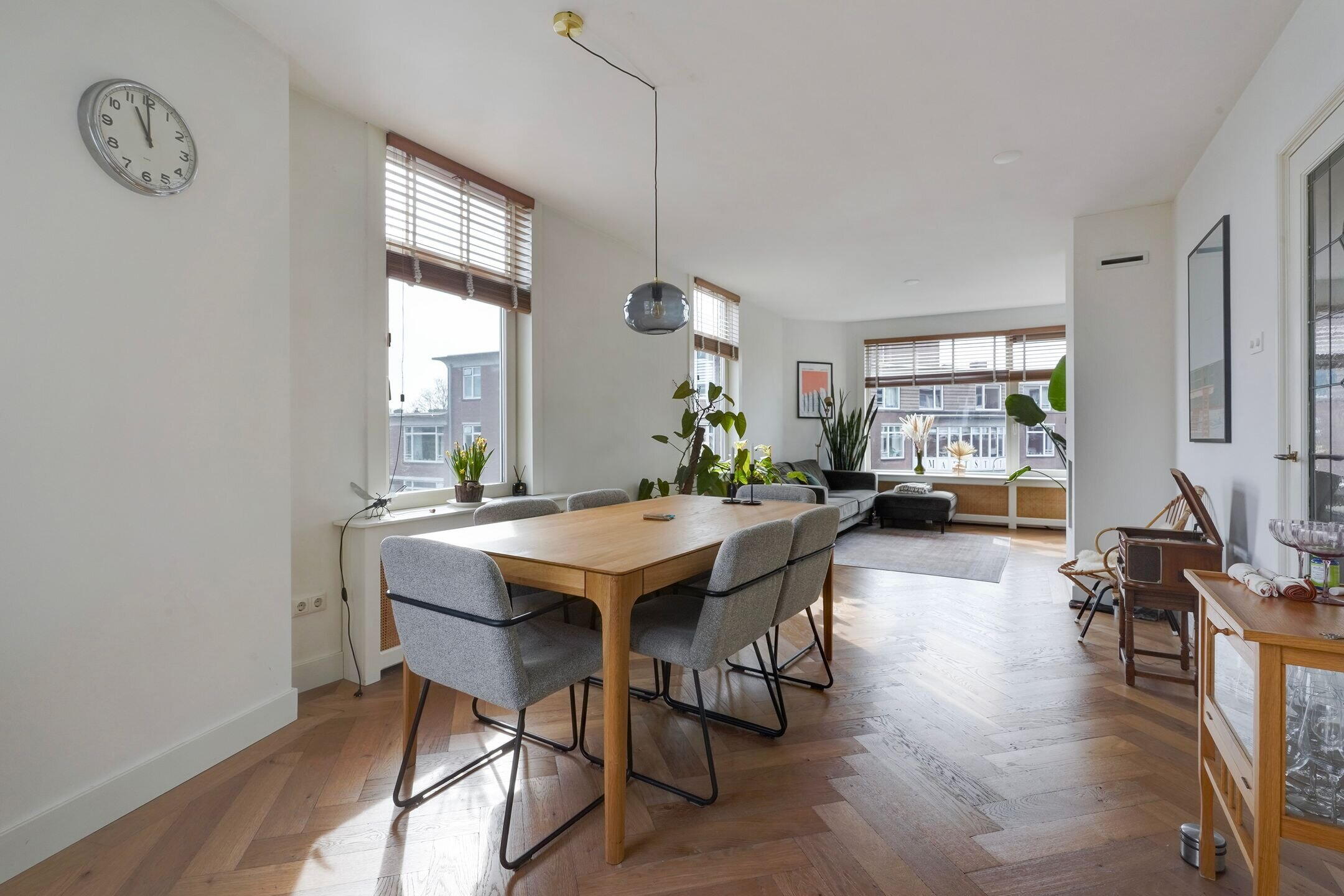 Open Haags portiek, entree op eerste etage, hal met meterkast, trap naar tweede verdieping, ruime lichte overloop, royale woon- eetkamer met een nieuwe hard houten eiken vloer, over de gehele lengte van de woning met een gezellige gesloten houtkachel, door de vele ramen komt er veel licht het appartement binnen en je kijk uit over het pleintje. Aangrenzende moderne open keuken met ingebouwde vaatwasser, een Smeg koel-vriescombinatie en een Boretti gasfornuis (inclusief spit functie) met design afzuigkap en toegang naar het balkon aan de achterzijde. Aan de voorzijde gelegen twee ruime slaapkamers. Compleet gerenoveerde badkamer voorzien van regendouche, wastafelmeubel en aansluiting voor de wasmachine en droger. Separaat toilet met fonteintje.